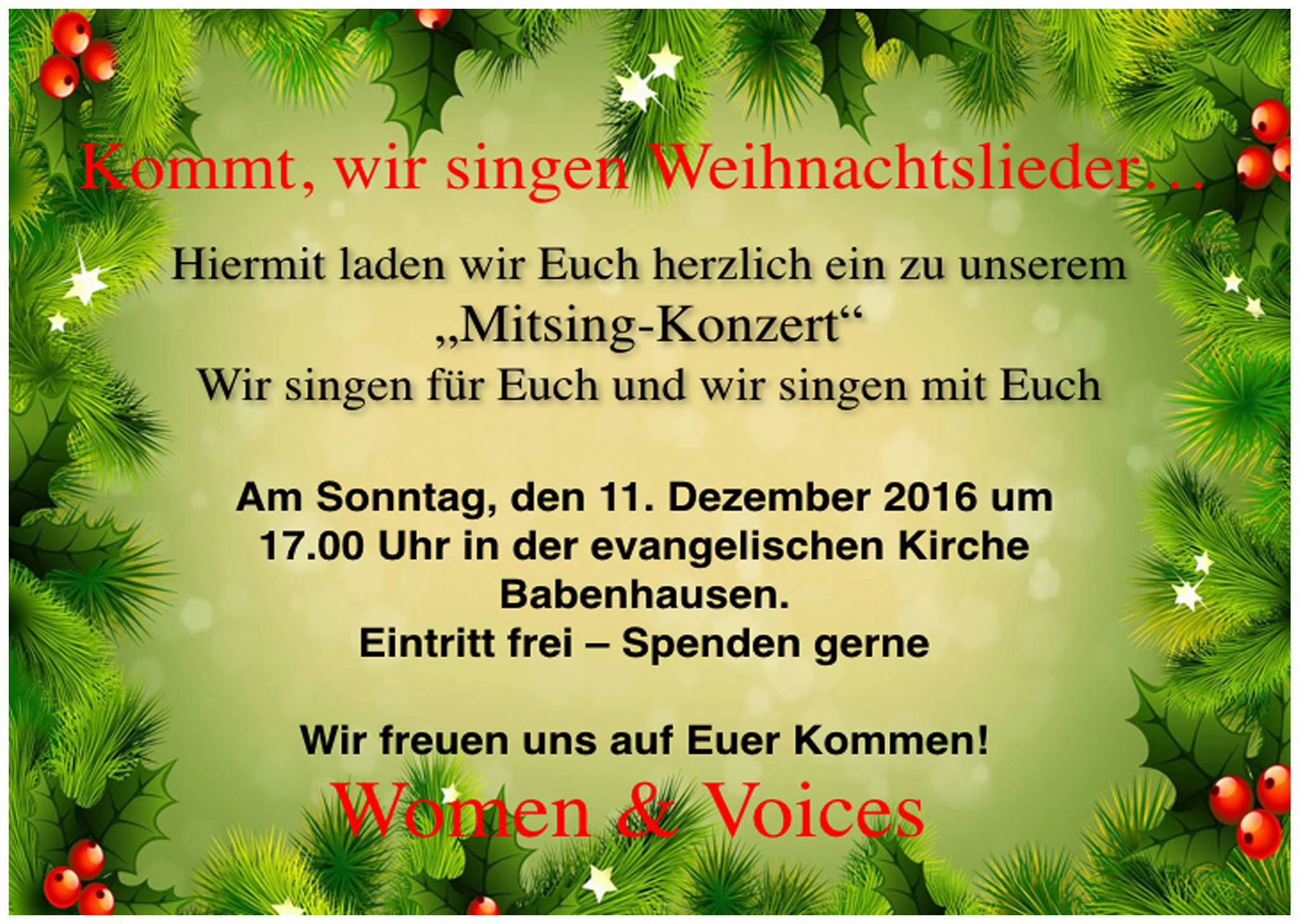 Mitsing-Konzert am dritten Advent – 11.12.2016 um 17.00 Uhr Posted on 24. Oktober 2016 by Helena Luca