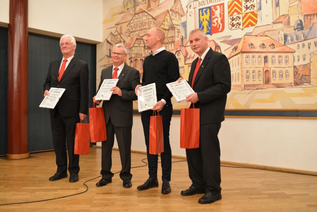 Alle Geehrten sind nicht nur aktive Sänger, sondern haben in einer Vielzahl von Vorstandsämtern auch umfangreiche organisatorische Arbeit geleistet. Zum Abschluss des offiziellen Teils erklang noch ein gemeinsames Lied, bevor sich der gemütliche Teil bis in den nächsten Tag erstreckte.